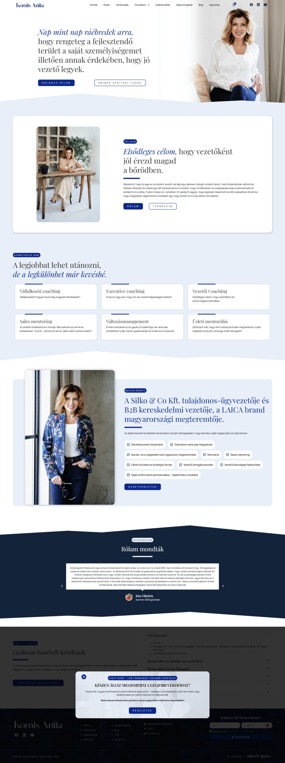 Anita oldalát 2025-ben új arculattal láttam el, és webshop integrációt is kapott, hogy a kurzusait még többen tudják megvásárolni, és fejlődni általa.